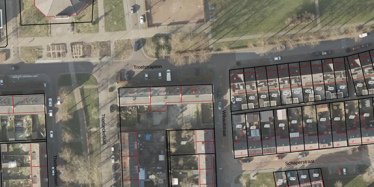 Het perceel waarop Troelstraplein 26 staat heeft een oppervlakte van 4025 m². Dit is een zeer groot perceel. De perceeloppervlakte wordt geregistreerd door het Kadaster. Gedetailleerde informatie over de maten van dit perceel kunt u vinden in het rapport Kadastrale kaart met maatvoering van Troelstraplein 26.
