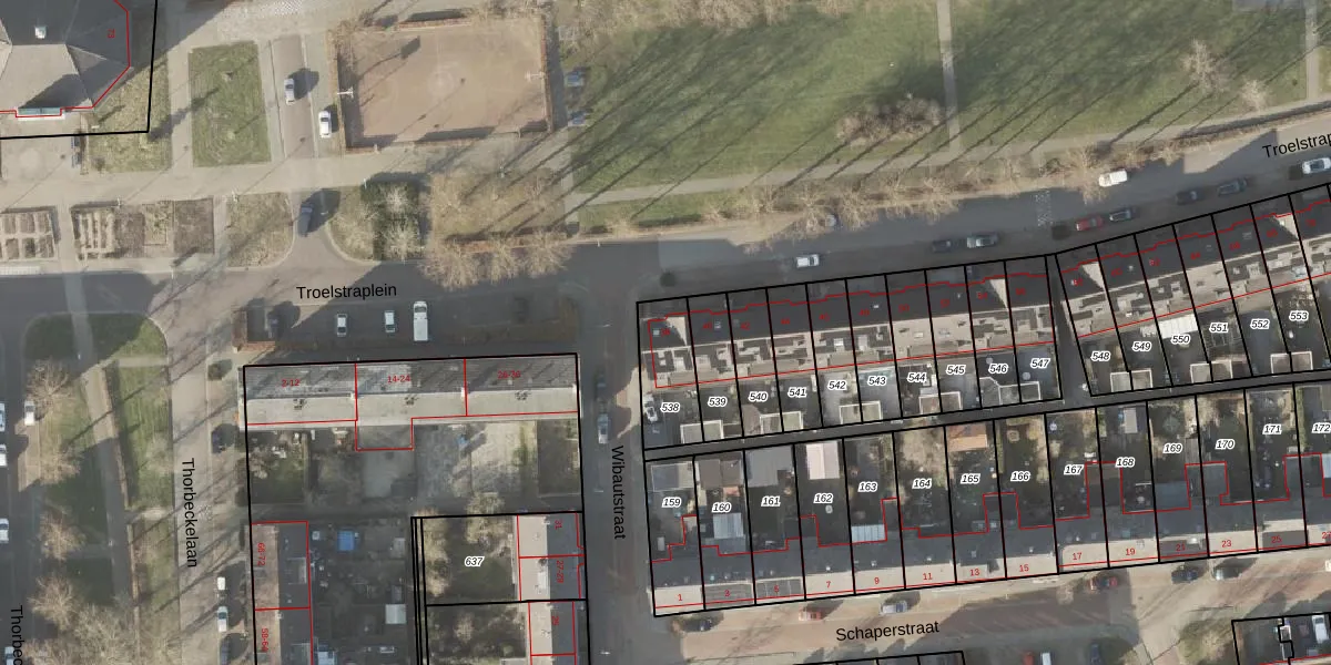 Het perceel waarop Troelstraplein 38 staat heeft een oppervlakte van 184 m². Dit is een middelgroot perceel. De perceeloppervlakte wordt geregistreerd door het Kadaster. Gedetailleerde informatie over de maten van dit perceel kunt u vinden in het rapport Kadastrale kaart met maatvoering van Troelstraplein 38.
