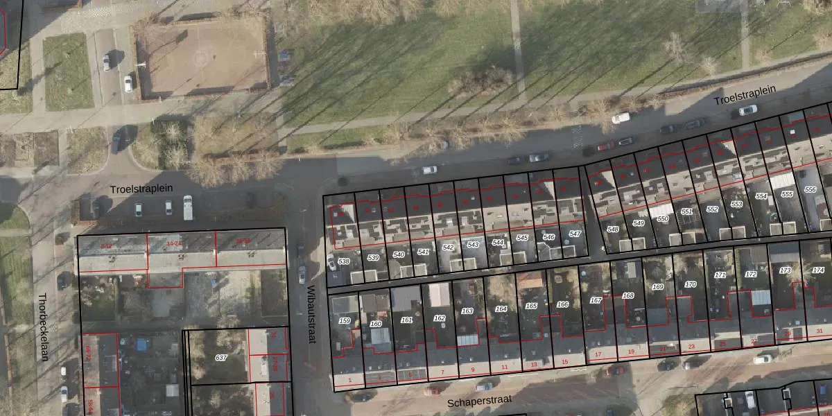 Gebruik de zoekbalk of klik op een perceel voor informatie over de adressen binnen dit perceel.
