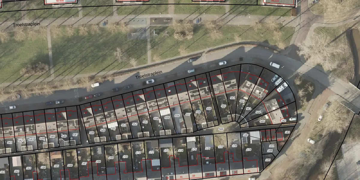 Het perceel waarop Troelstraplein 76 staat heeft een oppervlakte van 179 m². Dit is een middelgroot perceel. De perceeloppervlakte wordt geregistreerd door het Kadaster. Gedetailleerde informatie over de maten van dit perceel kunt u vinden in het rapport Kadastrale kaart met maatvoering van Troelstraplein 76.