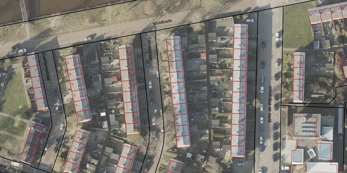 Het perceel waarop Trompstraat 20 staat heeft een oppervlakte van 6555 m². Dit is een zeer groot perceel. De perceeloppervlakte wordt geregistreerd door het Kadaster. Gedetailleerde informatie over de maten van dit perceel kunt u vinden in het rapport Kadastrale kaart met maatvoering van Trompstraat 20.