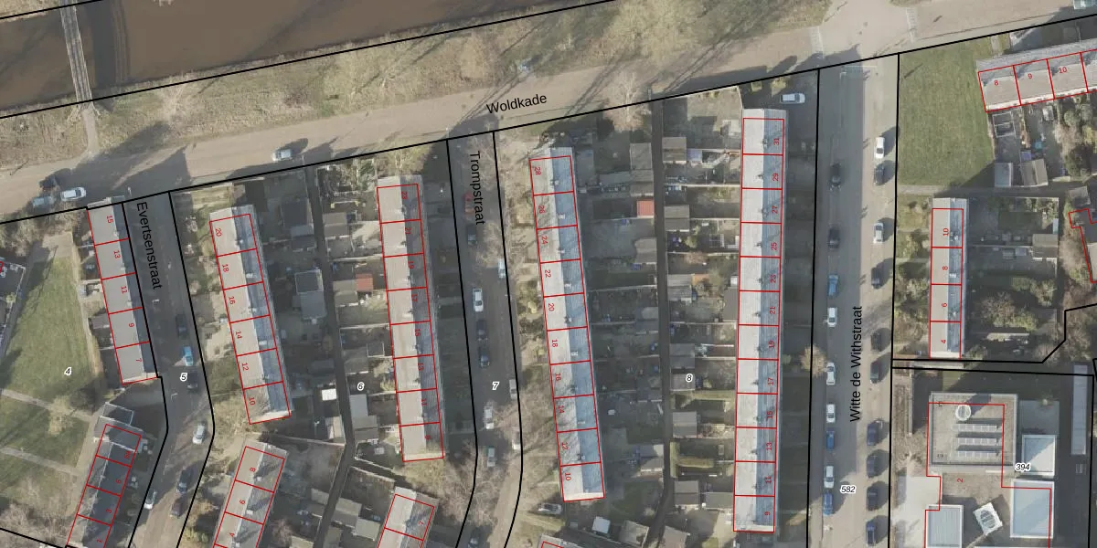 Het perceel waarop Trompstraat 22 staat heeft een oppervlakte van 6555 m². Dit is een zeer groot perceel. De perceeloppervlakte wordt geregistreerd door het Kadaster. Gedetailleerde informatie over de maten van dit perceel kunt u vinden in het rapport Kadastrale kaart met maatvoering van Trompstraat 22.