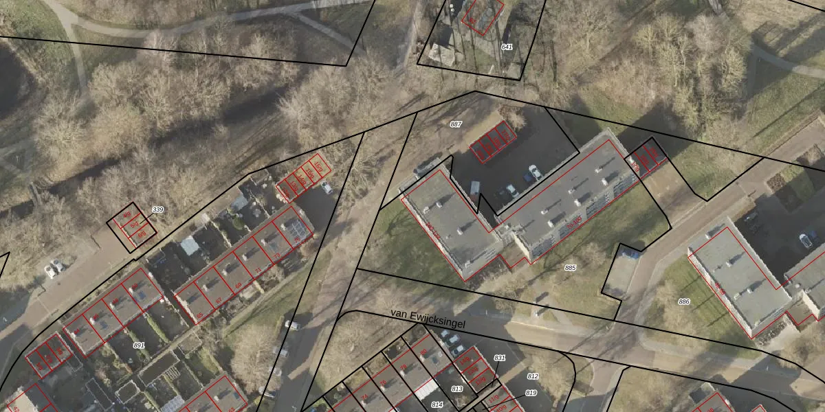 Het perceel waarop van Ewijcksingel 106 staat heeft een oppervlakte van 2177 m². Dit is een zeer groot perceel. De perceeloppervlakte wordt geregistreerd door het Kadaster. Gedetailleerde informatie over de maten van dit perceel kunt u vinden in het rapport Kadastrale kaart met maatvoering van van Ewijcksingel 106.