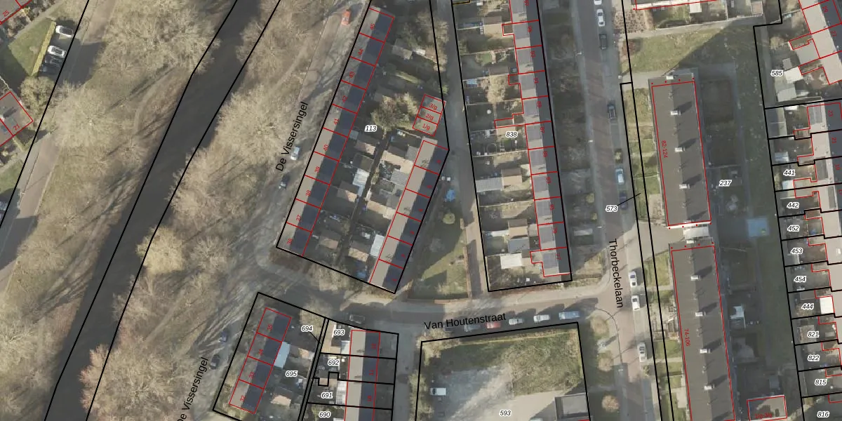 Het perceel waarop Van Houtenstraat 4 staat heeft een oppervlakte van 1785 m². Dit is een zeer groot perceel. De perceeloppervlakte wordt geregistreerd door het Kadaster. Gedetailleerde informatie over de maten van dit perceel kunt u vinden in het rapport Kadastrale kaart met maatvoering van Van Houtenstraat 4.