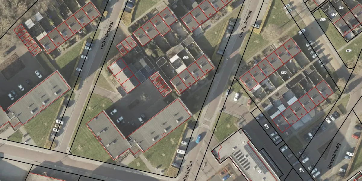 Het perceel waarop van Kuykstraat 33 staat heeft een oppervlakte van 7609 m². Dit is een zeer groot perceel. De perceeloppervlakte wordt geregistreerd door het Kadaster. Gedetailleerde informatie over de maten van dit perceel kunt u vinden in het rapport Kadastrale kaart met maatvoering van van Kuykstraat 33.