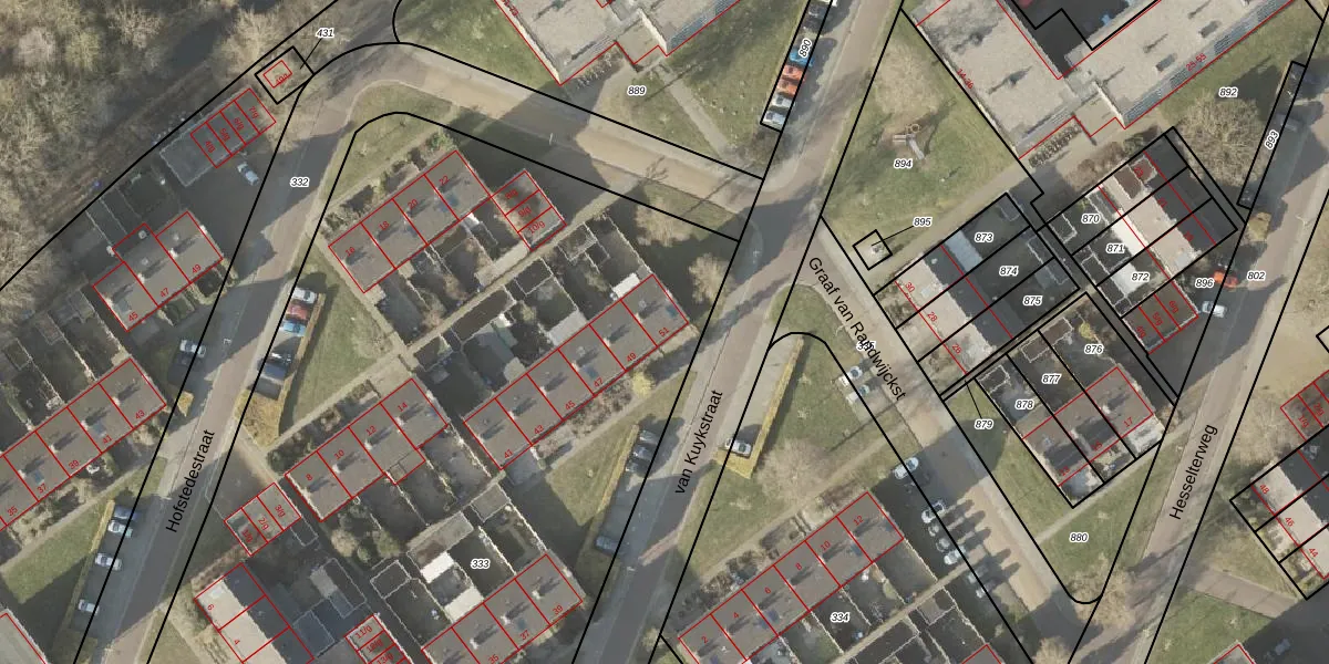 Het perceel waarop van Kuykstraat 51 staat heeft een oppervlakte van 7609 m². Dit is een zeer groot perceel. De perceeloppervlakte wordt geregistreerd door het Kadaster. Gedetailleerde informatie over de maten van dit perceel kunt u vinden in het rapport Kadastrale kaart met maatvoering van van Kuykstraat 51.