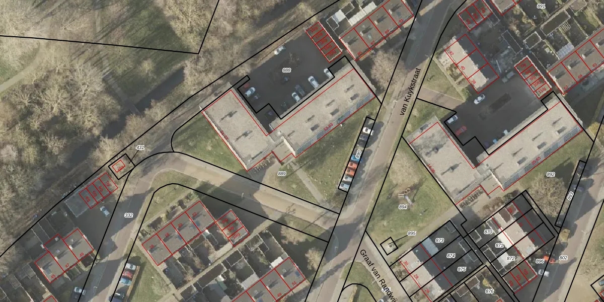 Het perceel waarop van Kuykstraat 53 staat heeft een oppervlakte van 1759 m². Dit is een zeer groot perceel. De perceeloppervlakte wordt geregistreerd door het Kadaster. Gedetailleerde informatie over de maten van dit perceel kunt u vinden in het rapport Kadastrale kaart met maatvoering van van Kuykstraat 53.