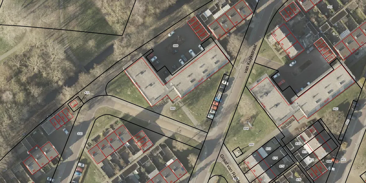 Het perceel waarop van Kuykstraat 61 staat heeft een oppervlakte van 1759 m². Dit is een zeer groot perceel. De perceeloppervlakte wordt geregistreerd door het Kadaster. Gedetailleerde informatie over de maten van dit perceel kunt u vinden in het rapport Kadastrale kaart met maatvoering van van Kuykstraat 61.