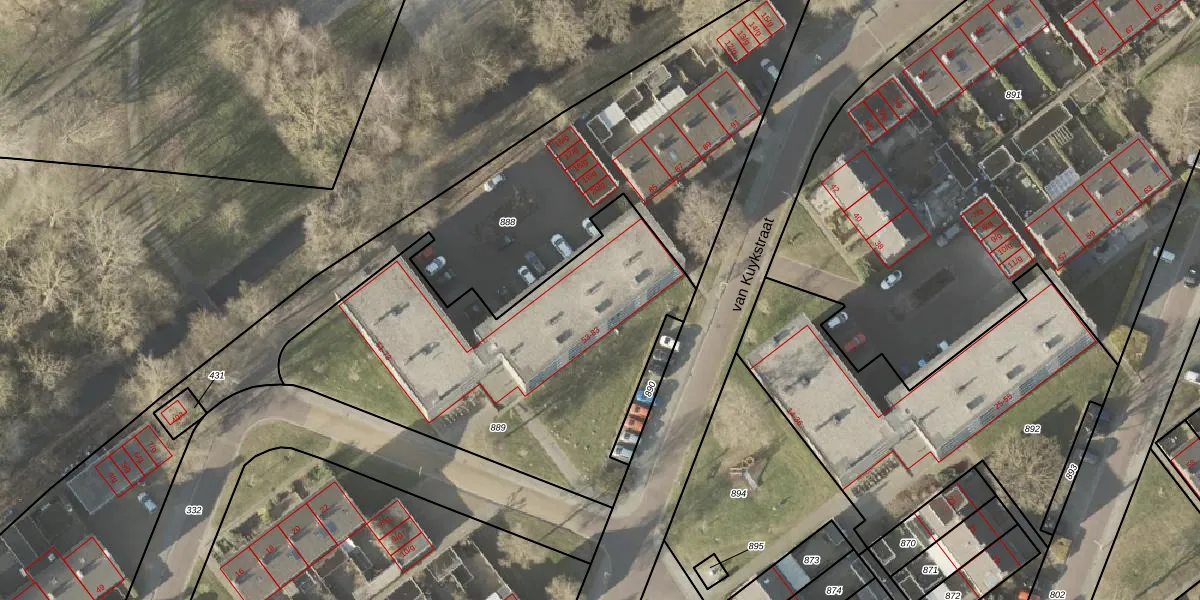 Het perceel waarop van Kuykstraat 73 staat heeft een oppervlakte van 1759 m². Dit is een zeer groot perceel. De perceeloppervlakte wordt geregistreerd door het Kadaster. Gedetailleerde informatie over de maten van dit perceel kunt u vinden in het rapport Kadastrale kaart met maatvoering van van Kuykstraat 73.