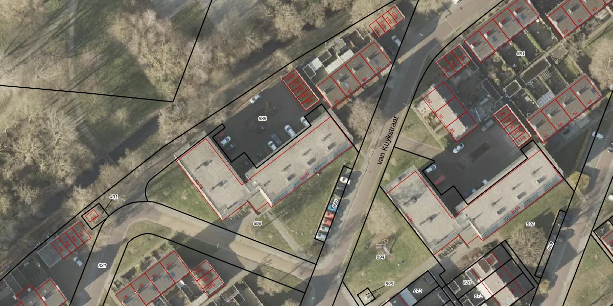 Het perceel waarop van Kuykstraat 81 staat heeft een oppervlakte van 1759 m². Dit is een zeer groot perceel. De perceeloppervlakte wordt geregistreerd door het Kadaster. Gedetailleerde informatie over de maten van dit perceel kunt u vinden in het rapport Kadastrale kaart met maatvoering van van Kuykstraat 81.
