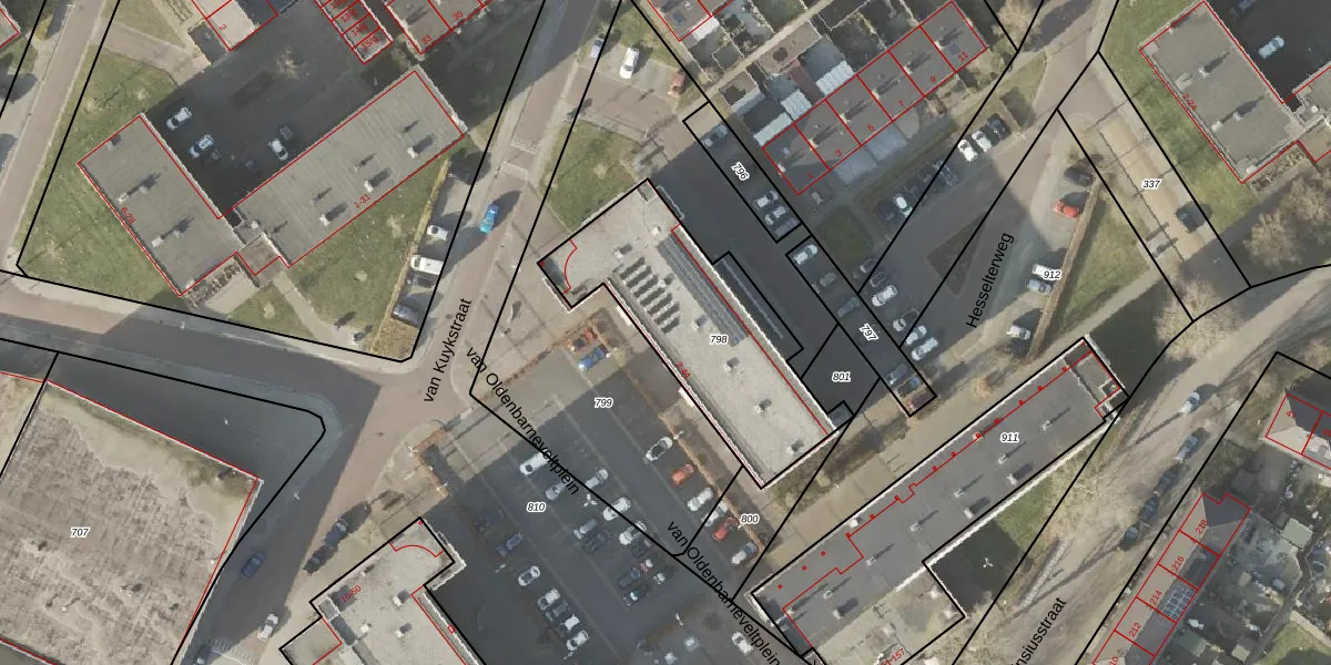 Het perceel waarop van Oldenbarneveltplein 2 staat heeft een oppervlakte van 818 m². Dit is een groot perceel. De perceeloppervlakte wordt geregistreerd door het Kadaster. Gedetailleerde informatie over de maten van dit perceel kunt u vinden in het rapport Kadastrale kaart met maatvoering van van Oldenbarneveltplein 2.