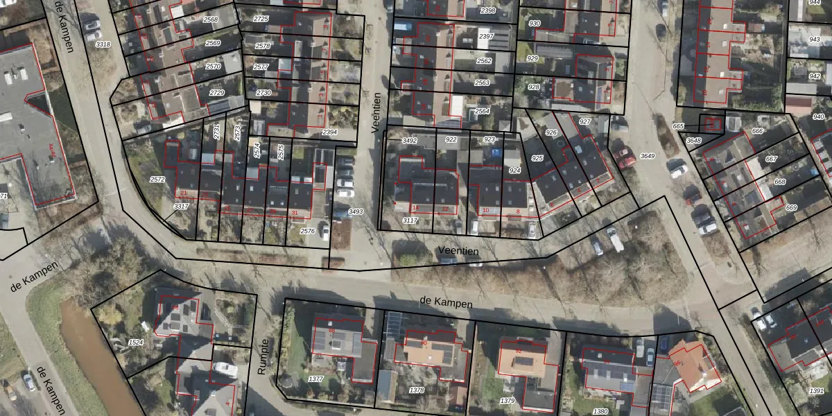 Het perceel waarop Veentien 14 staat heeft een oppervlakte van 311 m². Dit is een groot perceel. De perceeloppervlakte wordt geregistreerd door het Kadaster. Gedetailleerde informatie over de maten van dit perceel kunt u vinden in het rapport Kadastrale kaart met maatvoering van Veentien 14.