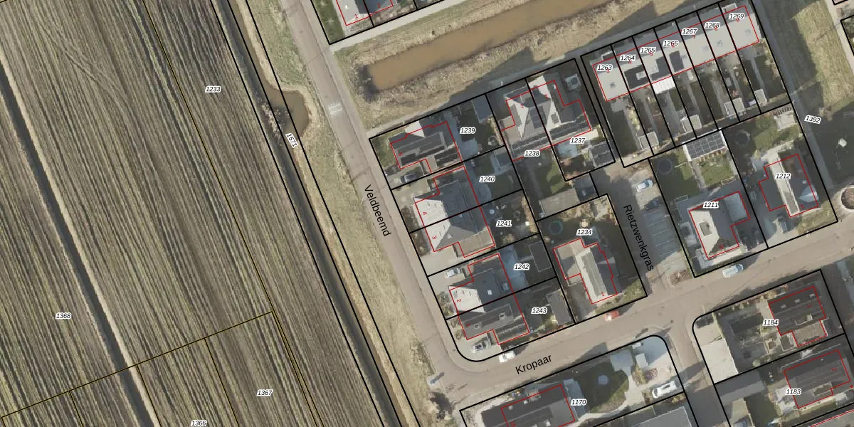 Het perceel waarop Veldbeemd 4 staat heeft een oppervlakte van 316 m². Dit is een groot perceel. De perceeloppervlakte wordt geregistreerd door het Kadaster. Gedetailleerde informatie over de maten van dit perceel kunt u vinden in het rapport Kadastrale kaart met maatvoering van Veldbeemd 4.
