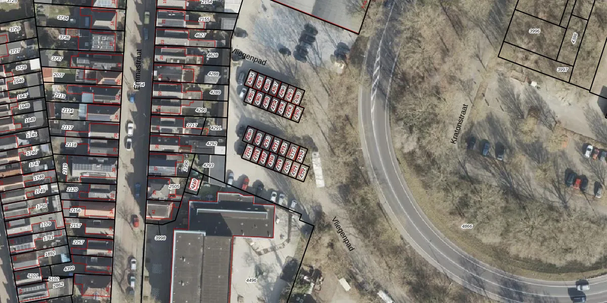 Gebruik de zoekbalk of klik op een perceel voor informatie over de adressen binnen dit perceel.