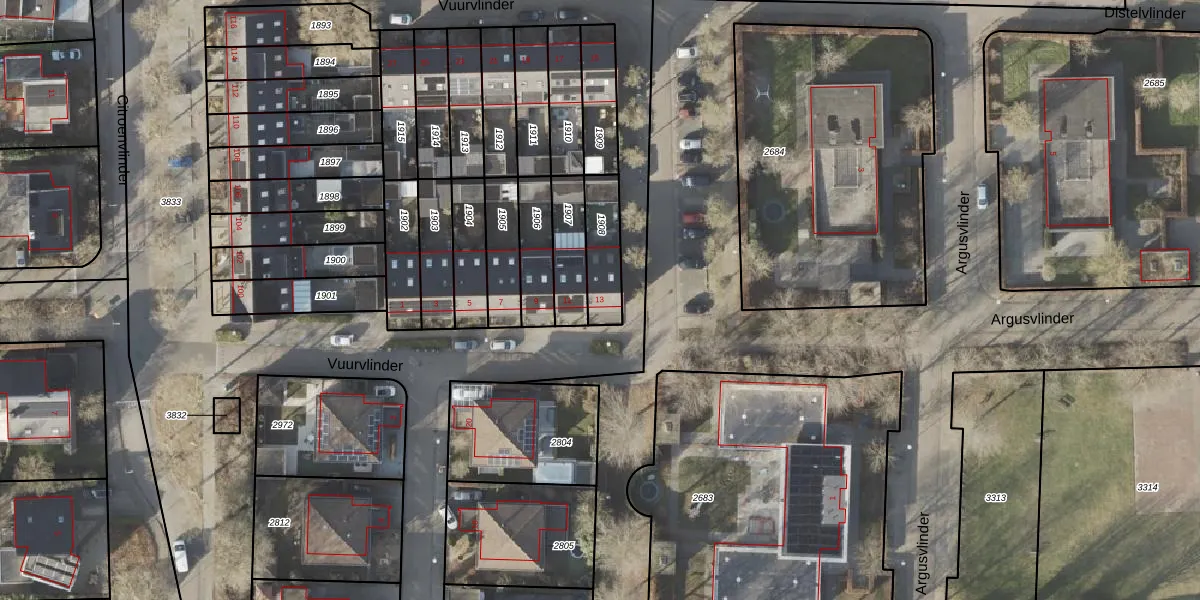 Het perceel waarop Vuurvlinder 13 staat heeft een oppervlakte van 144 m². Dit is een middelgroot perceel. De perceeloppervlakte wordt geregistreerd door het Kadaster. Gedetailleerde informatie over de maten van dit perceel kunt u vinden in het rapport Kadastrale kaart met maatvoering van Vuurvlinder 13.