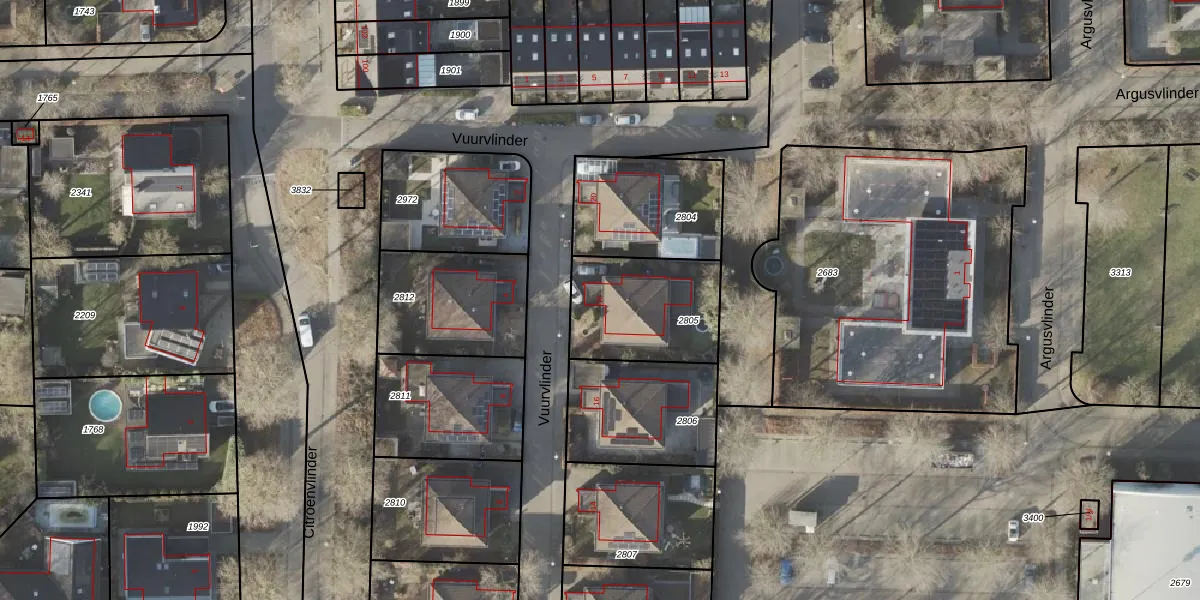Het perceel waarop Vuurvlinder 18 staat heeft een oppervlakte van 427 m². Dit is een groot perceel. De perceeloppervlakte wordt geregistreerd door het Kadaster. Gedetailleerde informatie over de maten van dit perceel kunt u vinden in het rapport Kadastrale kaart met maatvoering van Vuurvlinder 18.