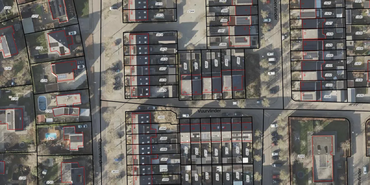 Het perceel waarop Vuurvlinder 29 staat heeft een oppervlakte van 195 m². Dit is een middelgroot perceel. De perceeloppervlakte wordt geregistreerd door het Kadaster. Gedetailleerde informatie over de maten van dit perceel kunt u vinden in het rapport Kadastrale kaart met maatvoering van Vuurvlinder 29.