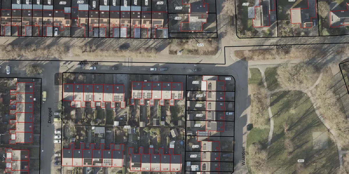 Het perceel waarop Waardeel 22 staat heeft een oppervlakte van 4264 m². Dit is een zeer groot perceel. De perceeloppervlakte wordt geregistreerd door het Kadaster. Gedetailleerde informatie over de maten van dit perceel kunt u vinden in het rapport Kadastrale kaart met maatvoering van Waardeel 22.