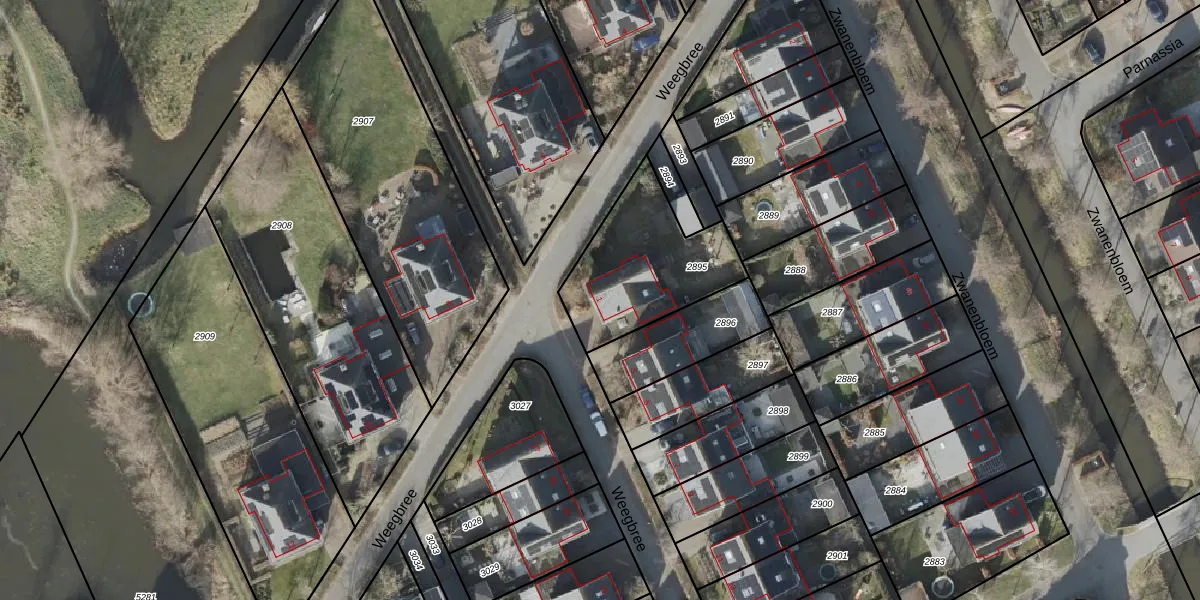 Gebruik de zoekbalk of klik op een perceel voor informatie over de adressen binnen dit perceel.