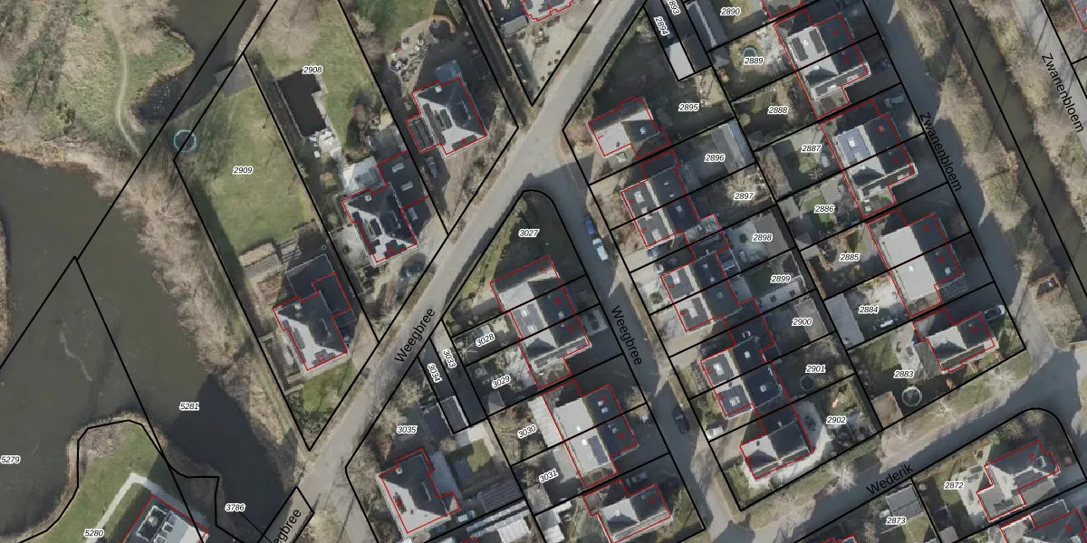 Gebruik de zoekbalk of klik op een perceel voor informatie over de adressen binnen dit perceel.