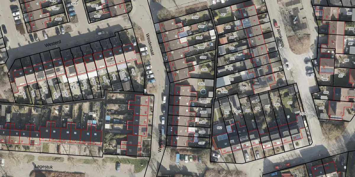 Het perceel waarop Weidemaat 44 staat heeft een oppervlakte van 238 m². Dit is een middelgroot perceel. De perceeloppervlakte wordt geregistreerd door het Kadaster. Gedetailleerde informatie over de maten van dit perceel kunt u vinden in het rapport Kadastrale kaart met maatvoering van Weidemaat 44.