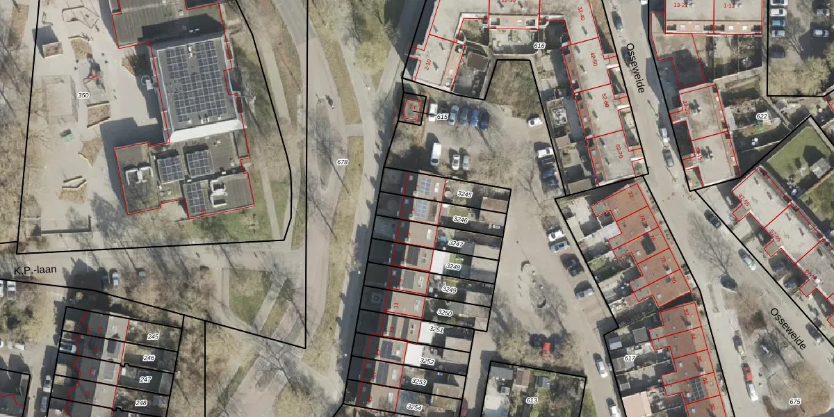 Gebruik de zoekbalk of klik op een perceel voor informatie over de adressen binnen dit perceel.