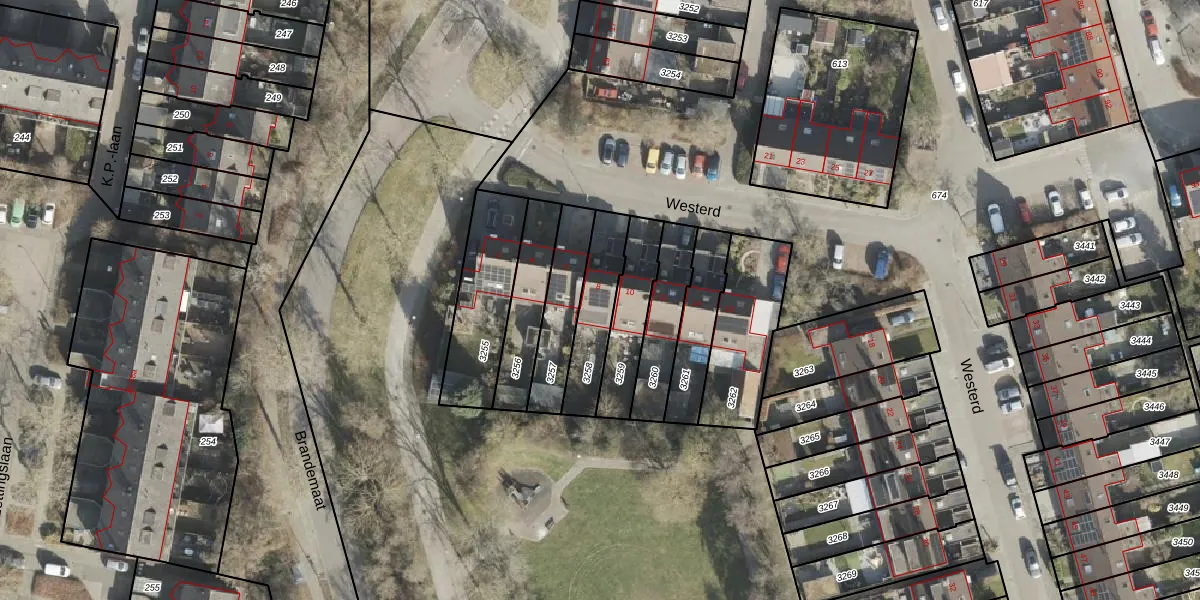 Gebruik de zoekbalk of klik op een perceel voor informatie over de adressen binnen dit perceel.
