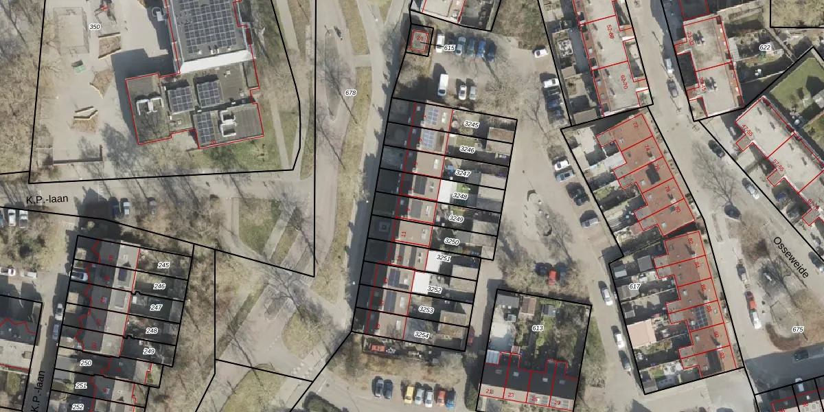 Gebruik de zoekbalk of klik op een perceel voor informatie over de adressen binnen dit perceel.