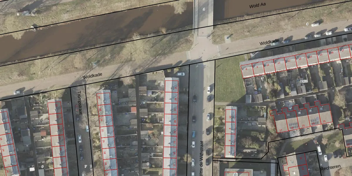Het perceel waarop Witte de Withstraat 31 staat heeft een oppervlakte van 6555 m². Dit is een zeer groot perceel. De perceeloppervlakte wordt geregistreerd door het Kadaster. Gedetailleerde informatie over de maten van dit perceel kunt u vinden in het rapport Kadastrale kaart met maatvoering van Witte de Withstraat 31.