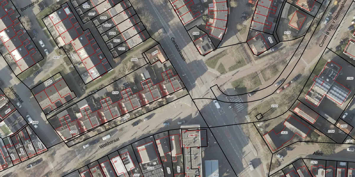 Het perceel waarop Woldstraat 119 staat heeft een oppervlakte van 1374 m². Dit is een zeer groot perceel. De perceeloppervlakte wordt geregistreerd door het Kadaster. Gedetailleerde informatie over de maten van dit perceel kunt u vinden in het rapport Kadastrale kaart met maatvoering van Woldstraat 119.