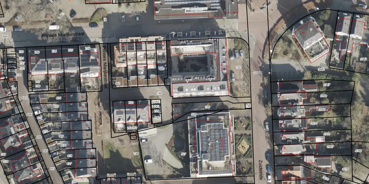 Zuideinde 76-E is gelegen op kadastraal perceel MPL00K732. Deze kadastrale aanduiding is uniek en wordt gebruikt door het Kadaster om eigendomsrechten en andere zakelijke rechten vast te leggen. Het perceel maakt onderdeel uit van de kadastrale gemeente Meppel.
