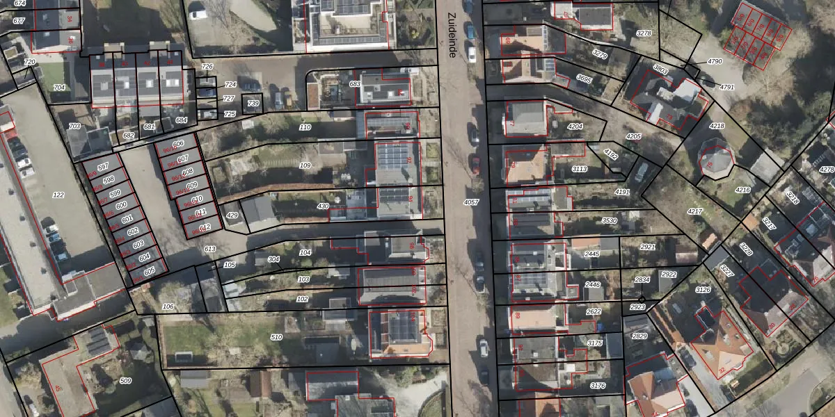 Gebruik de zoekbalk of klik op een perceel voor informatie over de adressen binnen dit perceel.