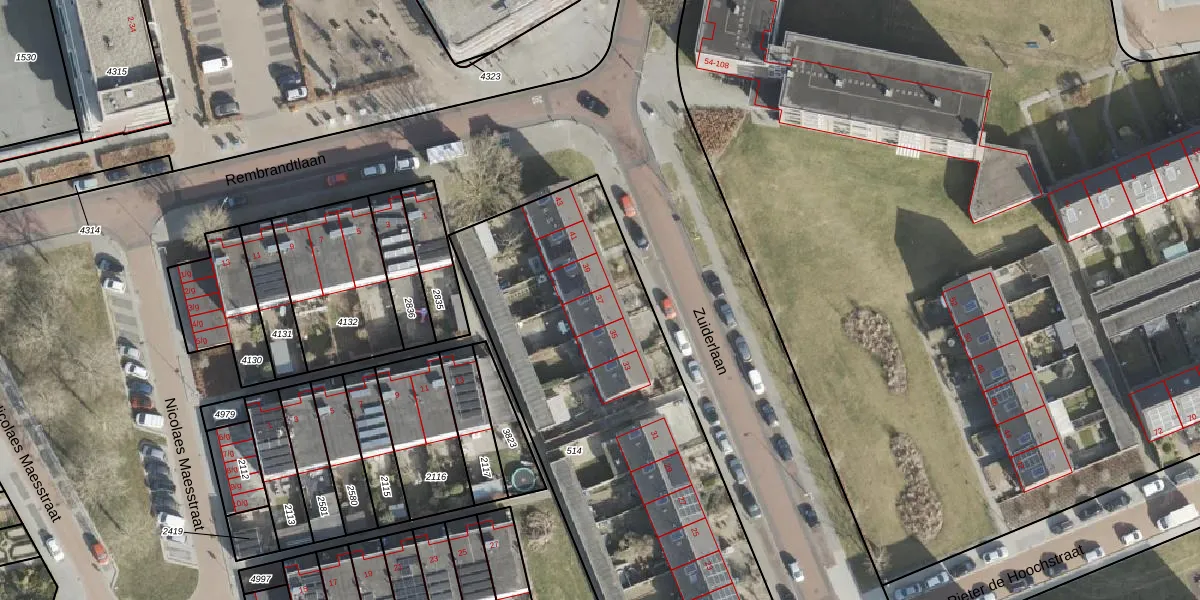 Het perceel waarop Zuiderlaan 37 staat heeft een oppervlakte van 2160 m². Dit is een zeer groot perceel. De perceeloppervlakte wordt geregistreerd door het Kadaster. Gedetailleerde informatie over de maten van dit perceel kunt u vinden in het rapport Kadastrale kaart met maatvoering van Zuiderlaan 37.