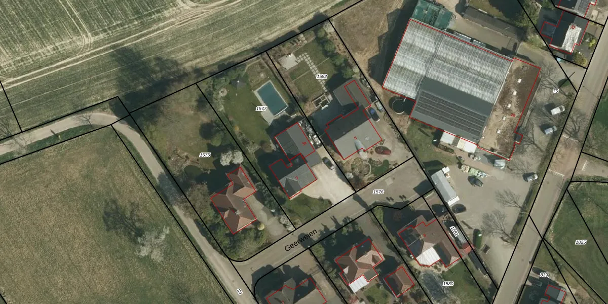 Het perceel waarop Geerweien 3-a staat heeft een oppervlakte van 1420 m². Dit is een zeer groot perceel. De perceeloppervlakte wordt geregistreerd door het Kadaster. Gedetailleerde informatie over de maten van dit perceel kunt u vinden in het rapport Kadastrale kaart met maatvoering van Geerweien 3-a.