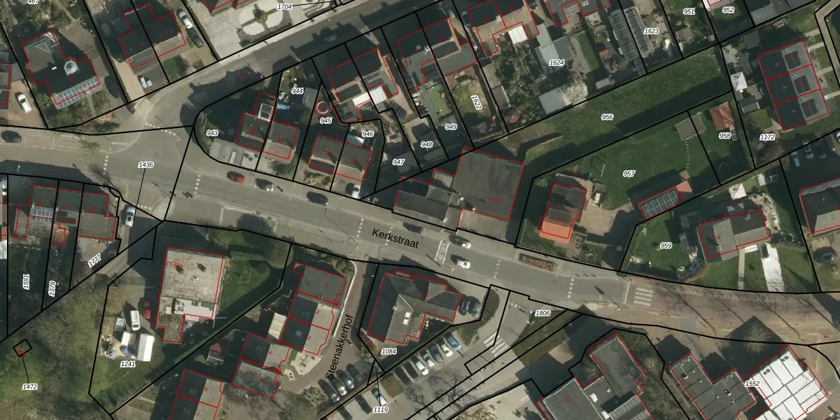 Kerkstraat 12 is gelegen op kadastraal perceel MKB00C956. Deze kadastrale aanduiding is uniek en wordt gebruikt door het Kadaster om eigendomsrechten en andere zakelijke rechten vast te leggen. Het perceel maakt onderdeel uit van de kadastrale gemeente Merkelbeek.