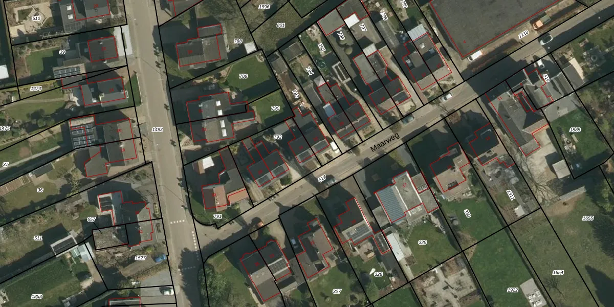 Het perceel waarop Maarweg 24 staat heeft een oppervlakte van 495 m². Dit is een groot perceel. De perceeloppervlakte wordt geregistreerd door het Kadaster. Gedetailleerde informatie over de maten van dit perceel kunt u vinden in het rapport Kadastrale kaart met maatvoering van Maarweg 24.