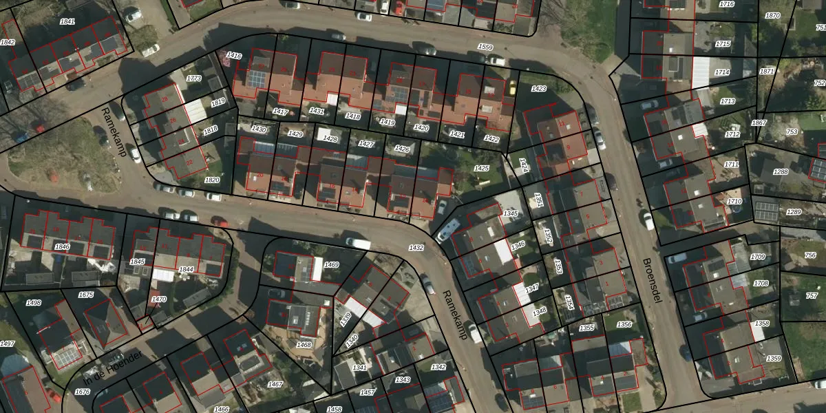 Het perceel waarop Ramekamp 10 staat heeft een oppervlakte van 358 m². Dit is een groot perceel. De perceeloppervlakte wordt geregistreerd door het Kadaster. Gedetailleerde informatie over de maten van dit perceel kunt u vinden in het rapport Kadastrale kaart met maatvoering van Ramekamp 10.