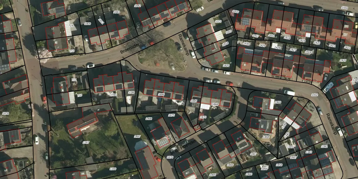 Het perceel waarop Ramekamp 15 staat heeft een oppervlakte van 563 m². Dit is een groot perceel. De perceeloppervlakte wordt geregistreerd door het Kadaster. Gedetailleerde informatie over de maten van dit perceel kunt u vinden in het rapport Kadastrale kaart met maatvoering van Ramekamp 15.