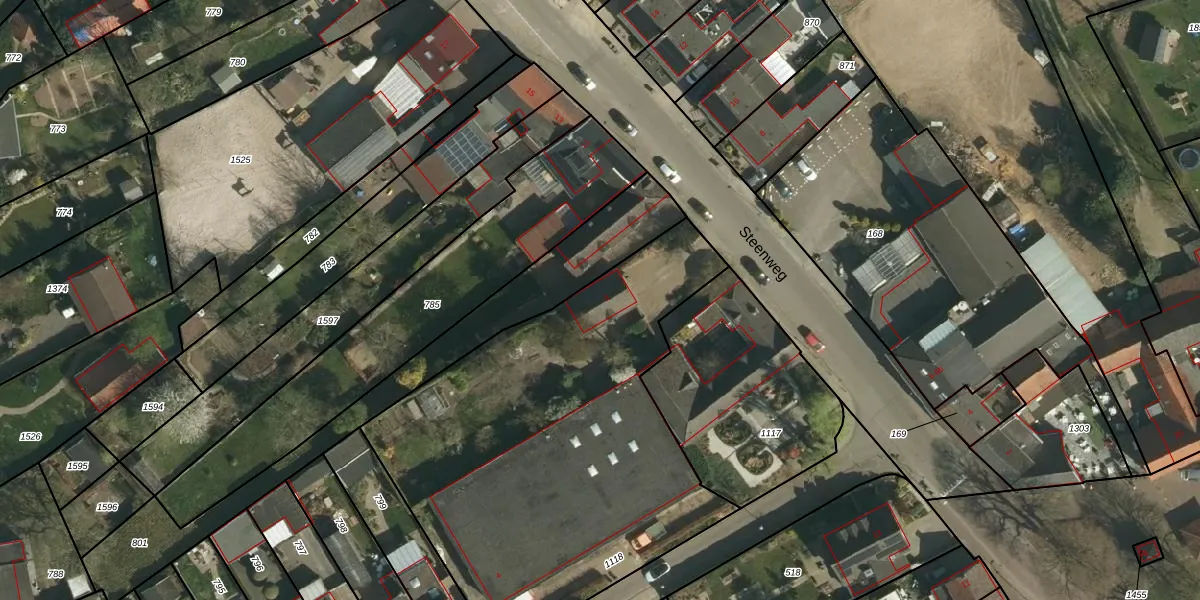 Het perceel waarop Steenweg 3 staat heeft een oppervlakte van 2280 m². Dit is een zeer groot perceel. De perceeloppervlakte wordt geregistreerd door het Kadaster. Gedetailleerde informatie over de maten van dit perceel kunt u vinden in het rapport Kadastrale kaart met maatvoering van Steenweg 3.