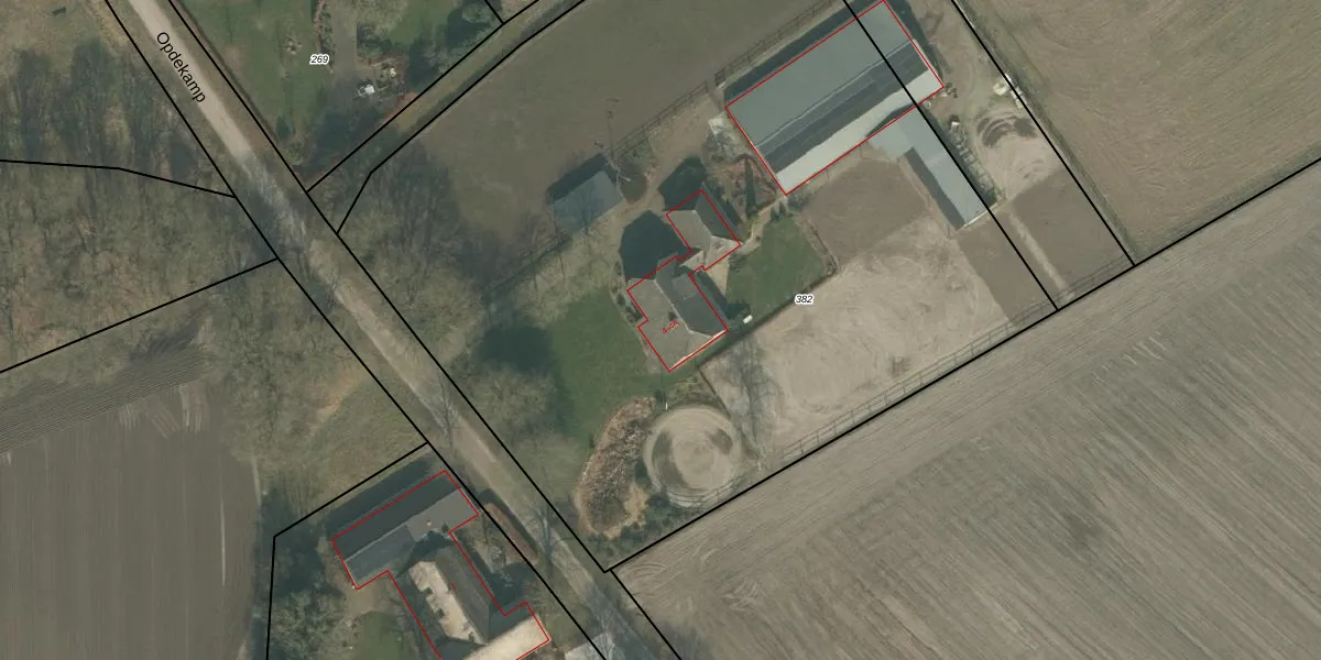 Het perceel waarop Opdekamp 4 staat heeft een oppervlakte van 6120 m². Dit is een zeer groot perceel. De perceeloppervlakte wordt geregistreerd door het Kadaster. Gedetailleerde informatie over de maten van dit perceel kunt u vinden in het rapport Kadastrale kaart met maatvoering van Opdekamp 4.