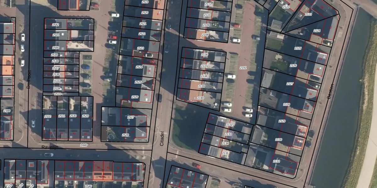 Gebruik de zoekbalk of klik op een perceel voor informatie over de adressen binnen dit perceel.