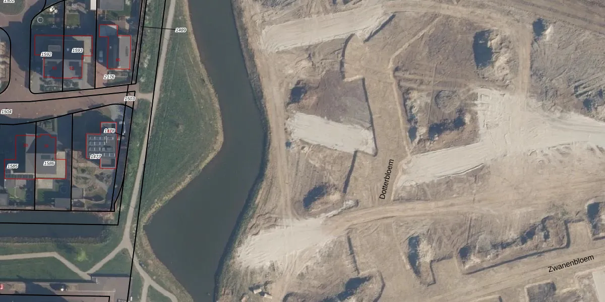 Het perceel waarop Dotterbloem 16 staat heeft een oppervlakte van 17,6 ha. Dit is een zeer groot perceel. De perceeloppervlakte wordt geregistreerd door het Kadaster. Gedetailleerde informatie over de maten van dit perceel kunt u vinden in het rapport Kadastrale kaart met maatvoering van Dotterbloem 16.