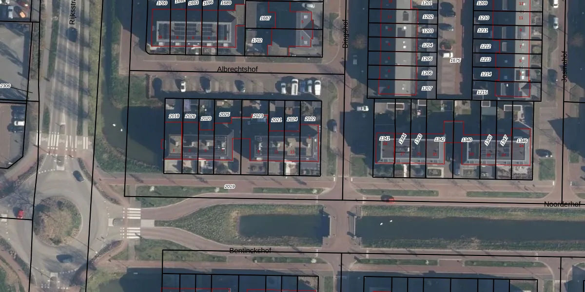 Noorderhof 13 is gelegen op kadastraal perceel GDM00N2024. Deze kadastrale aanduiding is uniek en wordt gebruikt door het Kadaster om eigendomsrechten en andere zakelijke rechten vast te leggen. Het perceel maakt onderdeel uit van de kadastrale gemeente Geldermalsen.