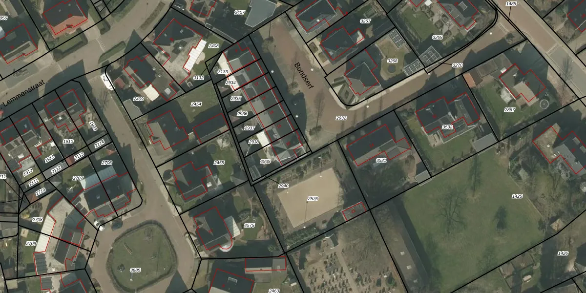Het perceel waarop Bondserf 20 staat heeft een oppervlakte van 190 m². Dit is een middelgroot perceel. De perceeloppervlakte wordt geregistreerd door het Kadaster. Gedetailleerde informatie over de maten van dit perceel kunt u vinden in het rapport Kadastrale kaart met maatvoering van Bondserf 20.