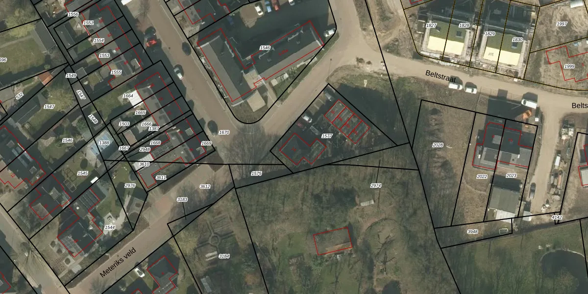 Het perceel waarop Meteriks veld 14 staat heeft een oppervlakte van 651 m². Dit is een groot perceel. De perceeloppervlakte wordt geregistreerd door het Kadaster. Gedetailleerde informatie over de maten van dit perceel kunt u vinden in het rapport Kadastrale kaart met maatvoering van Meteriks veld 14.