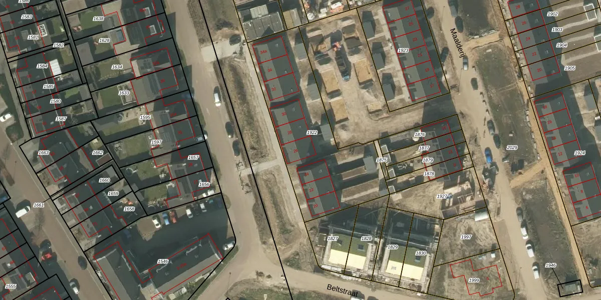 Het perceel waarop Meteriks veld 26 staat heeft een oppervlakte van 1355 m². Dit is een zeer groot perceel. De perceeloppervlakte wordt geregistreerd door het Kadaster. Gedetailleerde informatie over de maten van dit perceel kunt u vinden in het rapport Kadastrale kaart met maatvoering van Meteriks veld 26.
