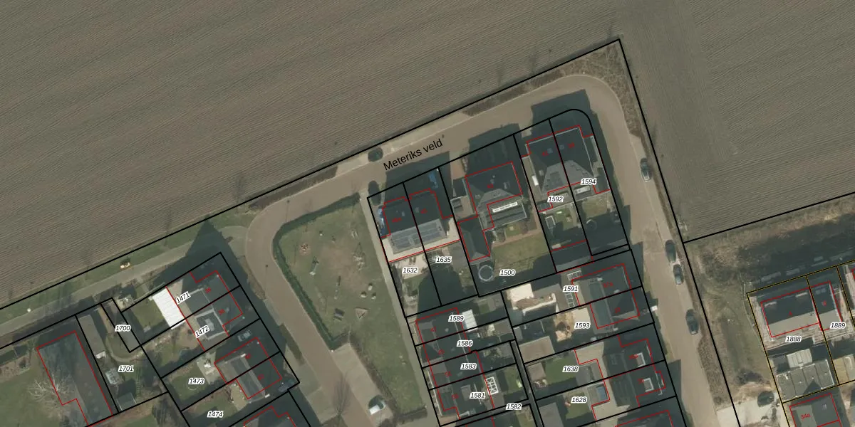 Meteriks veld 45 is gelegen op kadastraal perceel HOR01O1635. Deze kadastrale aanduiding is uniek en wordt gebruikt door het Kadaster om eigendomsrechten en andere zakelijke rechten vast te leggen. Het perceel maakt onderdeel uit van de kadastrale gemeente Horst.