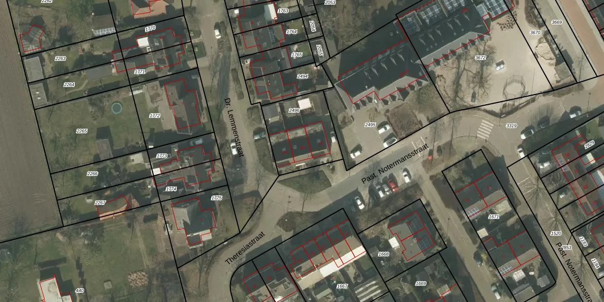 Het perceel waarop Past. Notermansstraat 46 staat heeft een oppervlakte van 516 m². Dit is een groot perceel. De perceeloppervlakte wordt geregistreerd door het Kadaster. Gedetailleerde informatie over de maten van dit perceel kunt u vinden in het rapport Kadastrale kaart met maatvoering van Past. Notermansstraat 46.