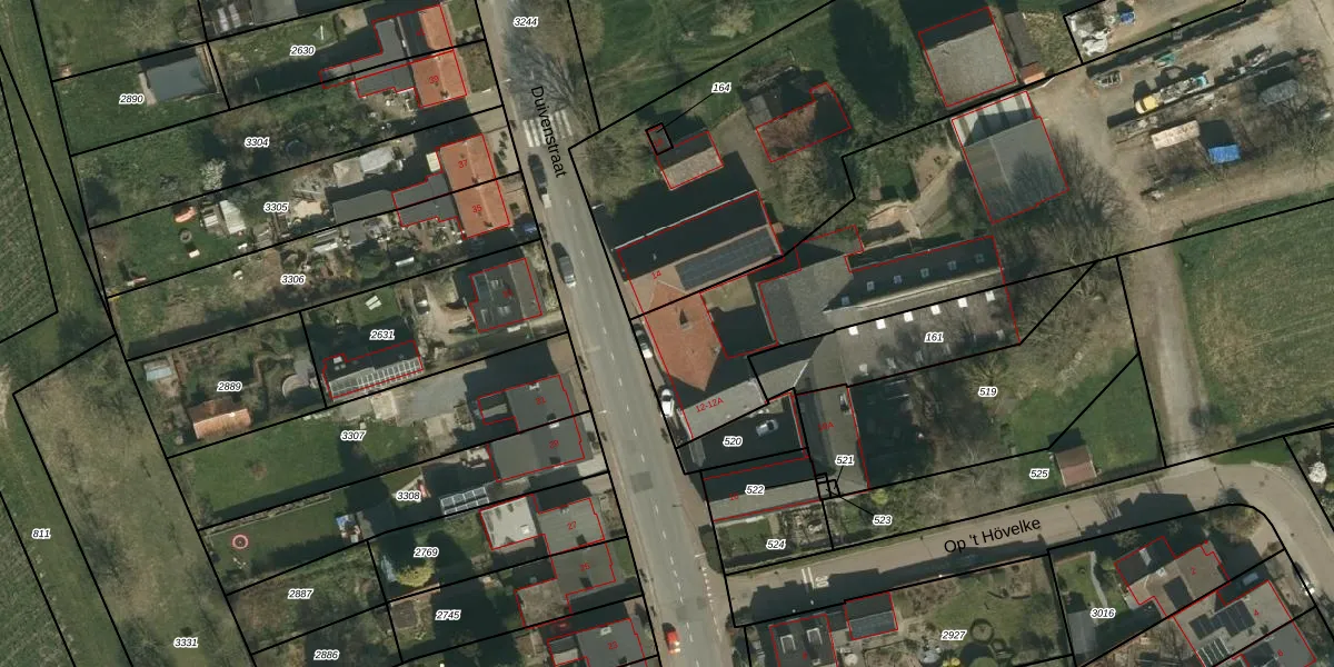 Duivenstraat 12-A is gelegen op kadastraal perceel MGT02T565. Deze kadastrale aanduiding is uniek en wordt gebruikt door het Kadaster om eigendomsrechten en andere zakelijke rechten vast te leggen. Het perceel maakt onderdeel uit van de kadastrale gemeente Margraten.