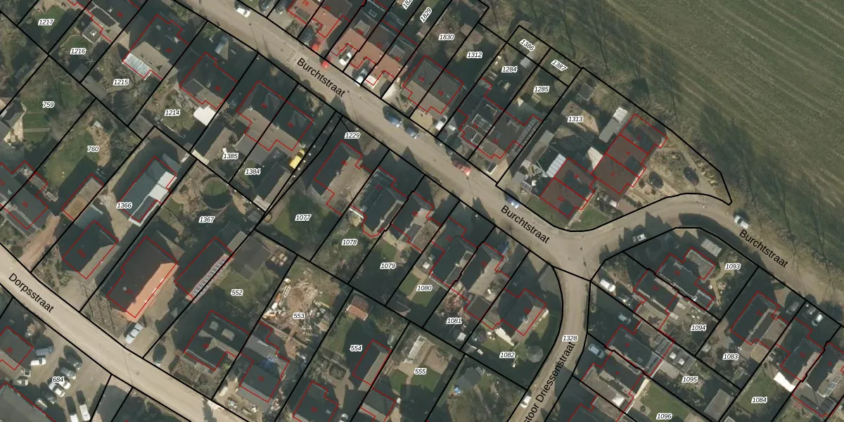 Het perceel waarop Burchtstraat 25 staat heeft een oppervlakte van 323 m². Dit is een groot perceel. De perceeloppervlakte wordt geregistreerd door het Kadaster. Gedetailleerde informatie over de maten van dit perceel kunt u vinden in het rapport Kadastrale kaart met maatvoering van Burchtstraat 25.